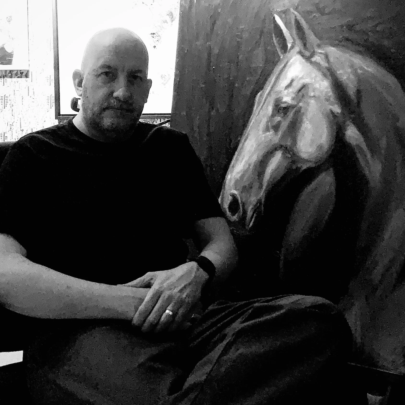Damian is a visual artist whose practice spans equestrian painting and portraiture, exploring both the human and animal form with equal intensity. His work captures the unique character, presence, and emotional depth of each subject—whether horse or human—through posture, expression, and movement, creating a powerful connection with the viewer. Each painting seeks to reveal something quietly commanding beneath the surface, a blend of strength, spirit, and vulnerability.